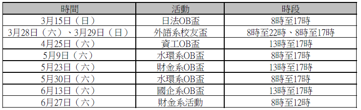 【公告】114學年度第2學期假日場地借用一覽表!請查照。